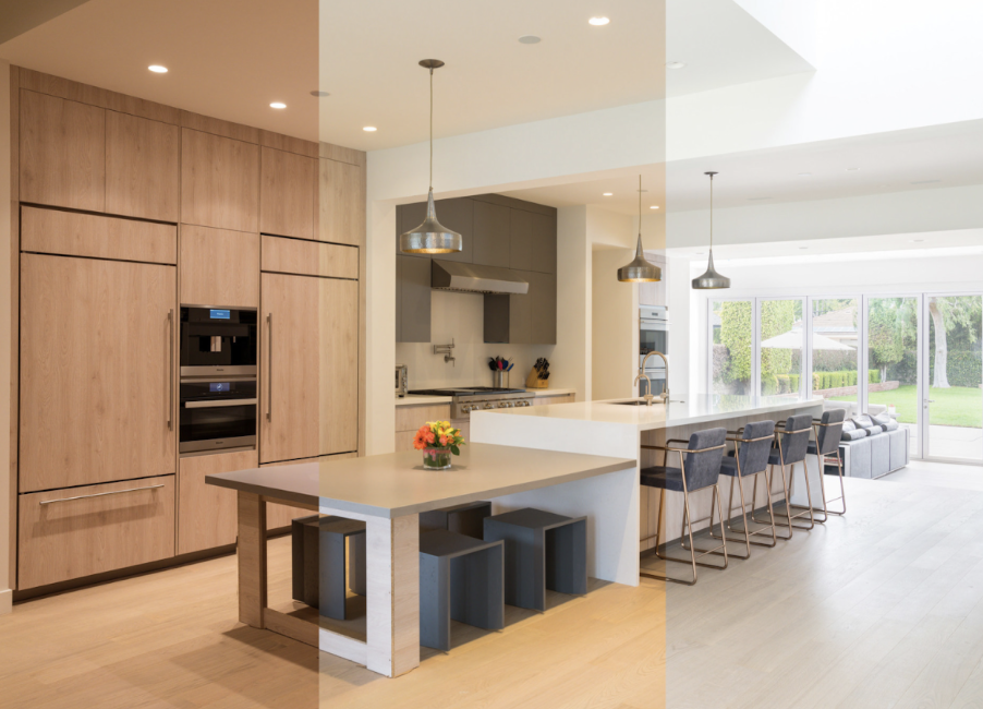 Standard artificial light is static. Unmoving. Unfortunately, more and more hours of our lives are spent beneath these blinding bulbs, unknowingly promoting unhealthy stress responses and unnatural dips in productivity. Humans need the right light color and intensity at the correct time of day to live life optimally. Light signals our bodies to feel and behave in certain ways, and many homeowners are becoming aware of this fact, believing that a connectedness to nature is important in their home design. Within the past year, we’ve found that our clients increasingly desire to create a wellness retreat within their homes, an escape from the hustle & bustle of everyday busyness. Our architect and design partners are actively working to increase the natural light within a space, and HCL solutions aim to extend the benefits of this lighting internally throughout the entire structure.